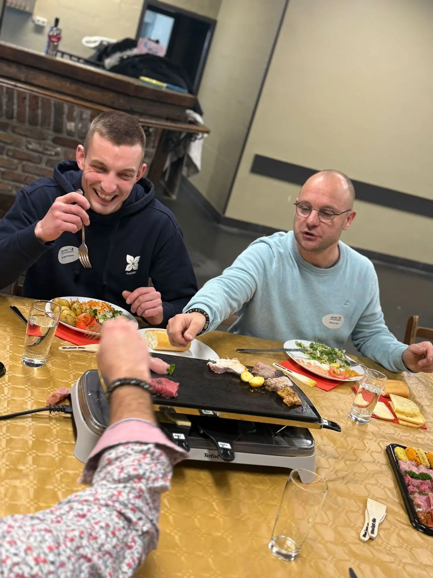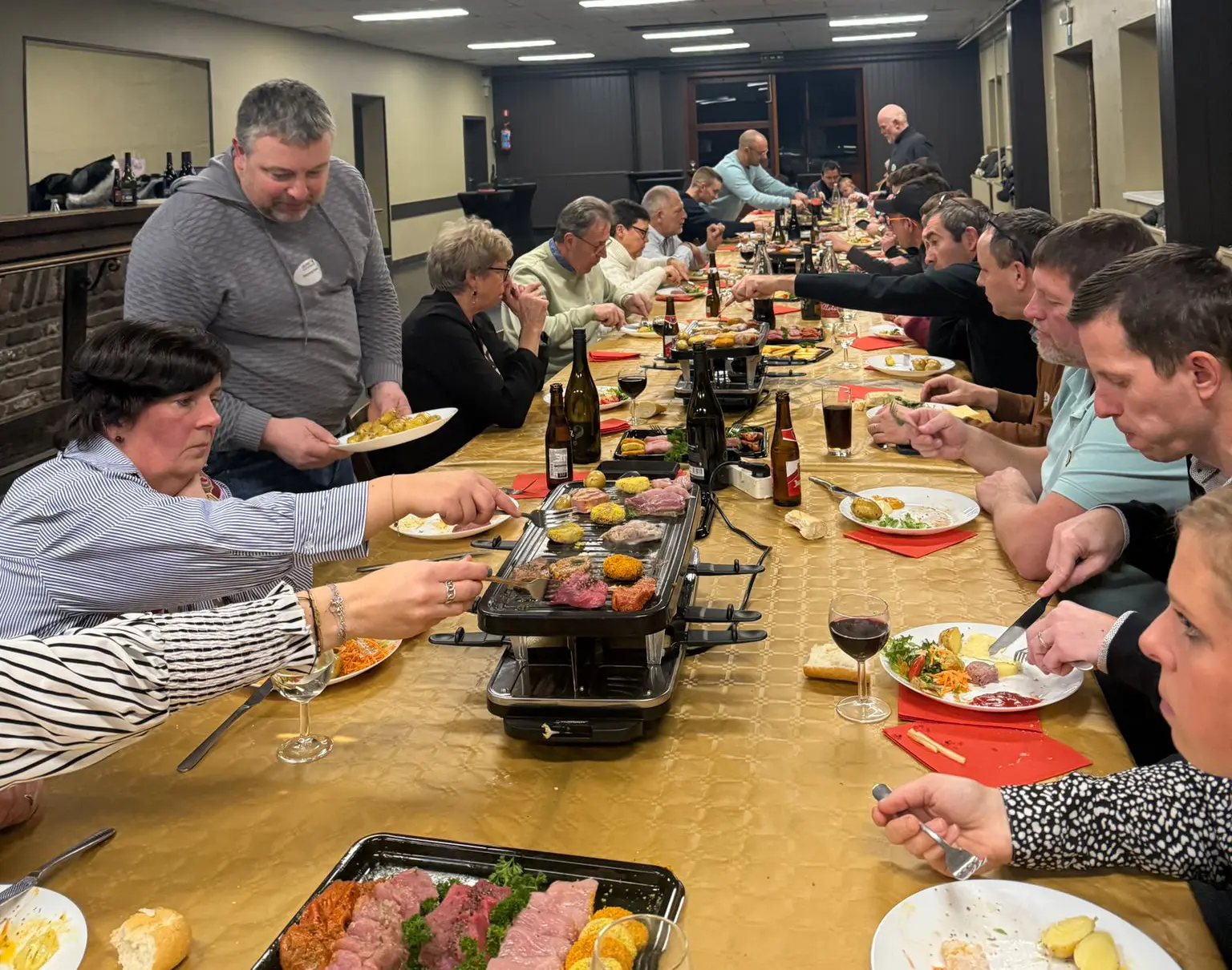 Une quarantaine d’entrepreneurs réunis ce mardi à la salle La Grange à Sart pour une soirée pierrade-raclette "entre amis"